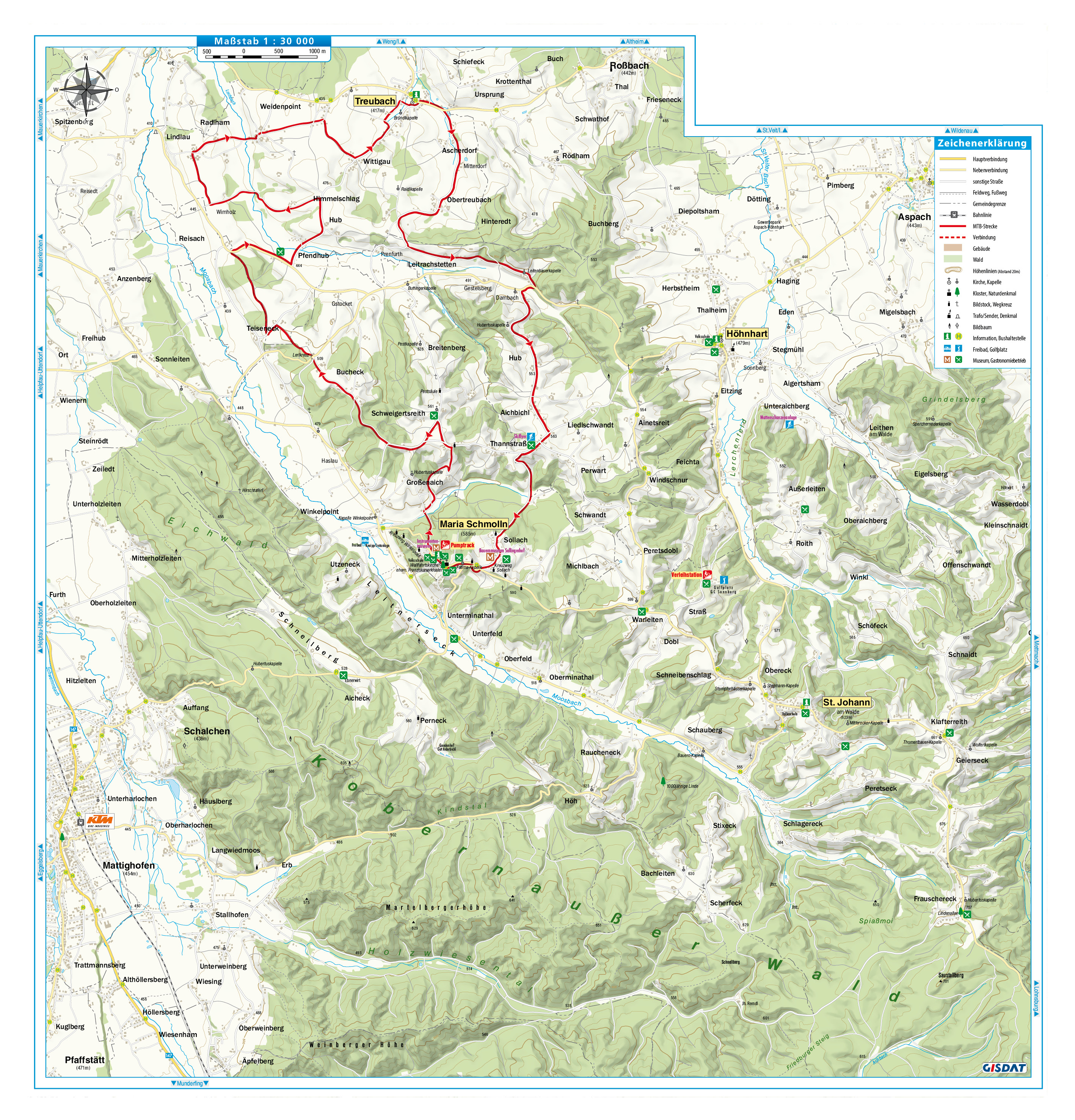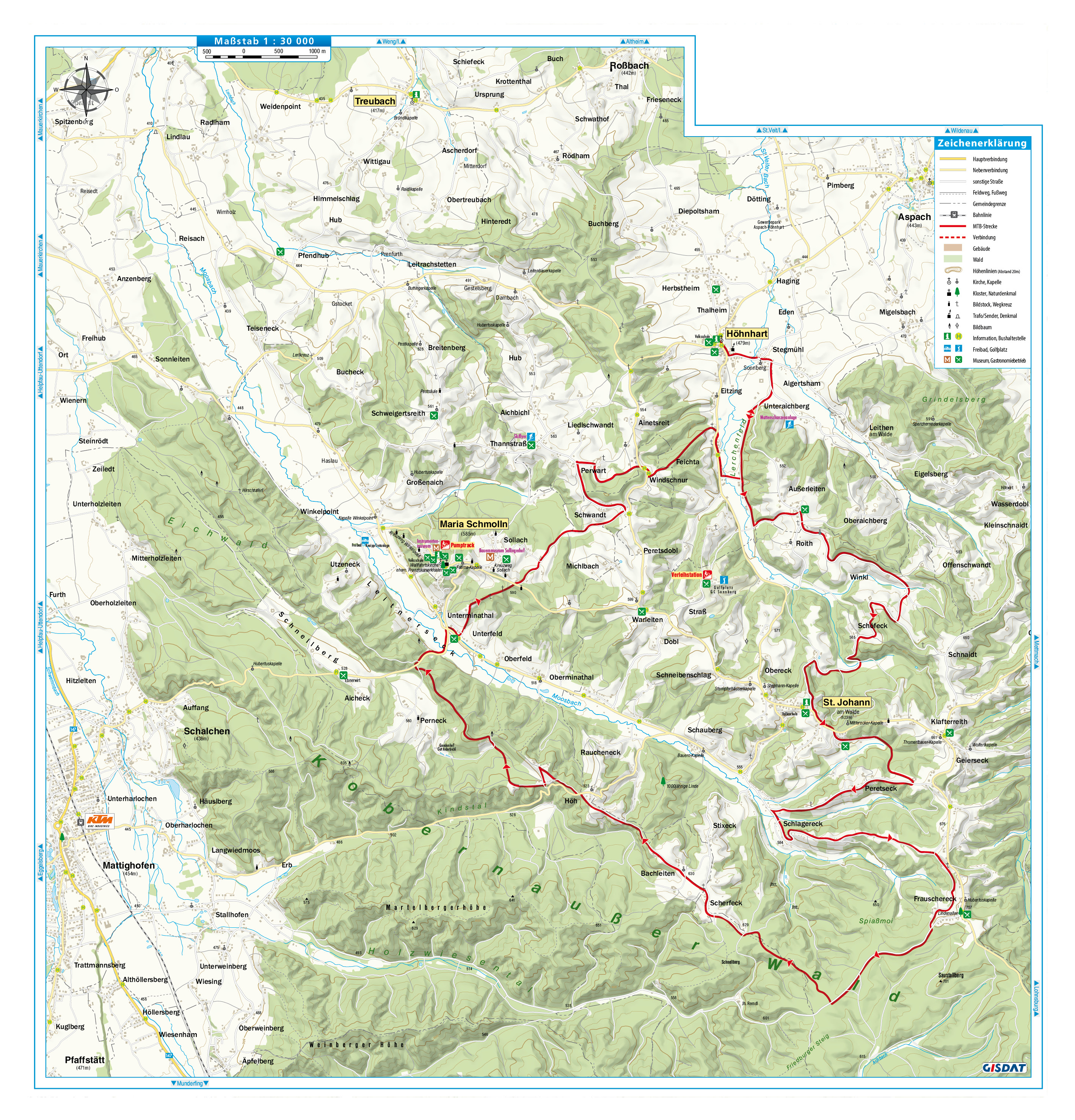 Die Österr. Bundesforste, das Land Oberösterreich und die Gemeinden Maria Schmolln, St. Johann am Walde, Höhnhart und Treubach stellen ihnen die hier gekennzeichneten Mountainbike-Strecke zur Verfügung. Bitte bedenken Sie, dass diese Straßen auch von anderen benützt werden, und richten Sie Ihr Fahrverhalten danach aus. Die Strecken stehen Ihnen von 15. April bis 31. Oktober in der Zeit von 2 Stunden nach Sonnenaufgang bis 1 Stunde vor Sonnenuntergang zur Verfügung.
